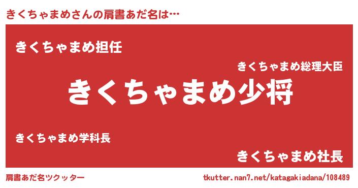 | 男性向けラノベタイトル風あだ名 | 『きくちゃまめ~年齢イコール彼女いない歴の魔法使い~』 |