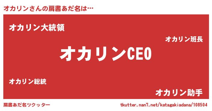 | 欧米人風あだ名 | 『マイケルオカリン』『ダニエルオカリン』 |