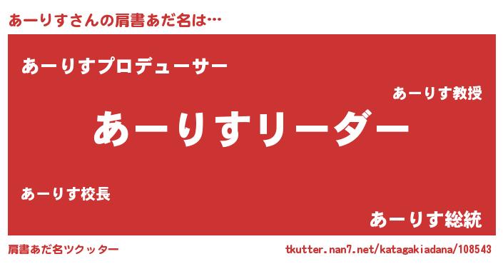 | ヘコむあだ名 | 『あーぷりん』『あーりす(震え声)』 |