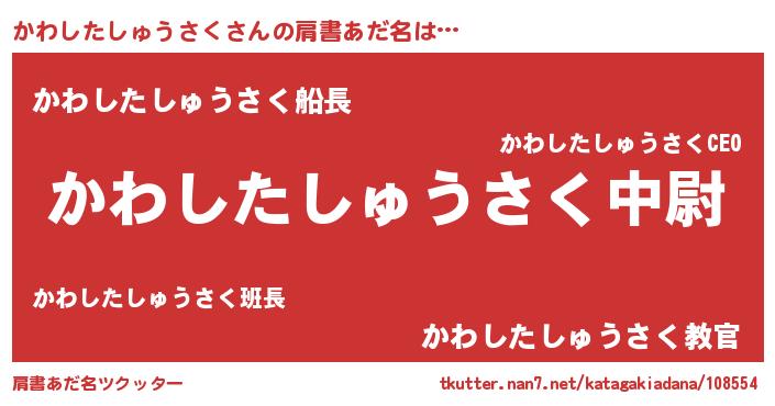 | ヒーロー風カッコイイあだ名 | 『仮面カワダー』『銀牙騎士カワ』 |