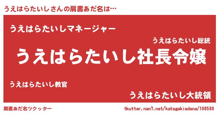 | 胡散臭い通販商品みたいなあだ名 | 『億万長者になれる霊験あらたかなお札…その名も「うえはらたいし」』 |