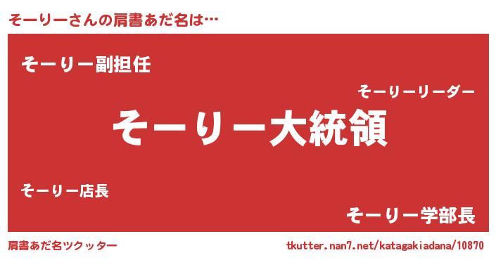 | ヒーロー風カッコイイあだ名 | 『ウルトラそーりーマン』『ネオソーリー』 |