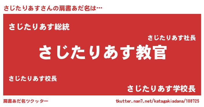 | 意味不明あだ名 | 『住所不定無職さじたりあす(65歳)』 |