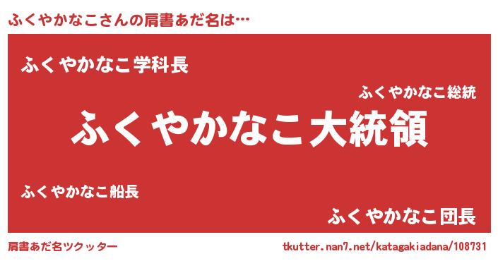 | 意味不明あだ名 | 『ふくやかなこフォーエバー』 |