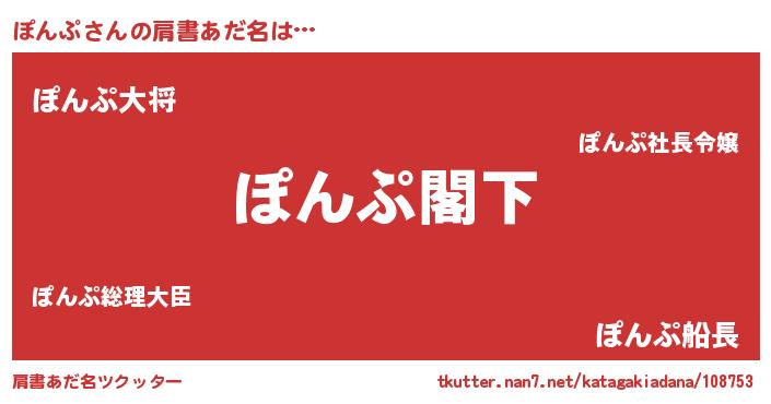 | 男性向けラノベタイトル風あだ名 | 『Re:ぽんぷから始める異世界生活』 |