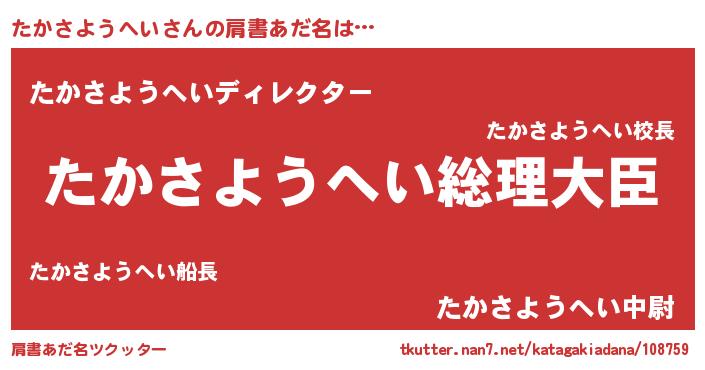 | 男性向けラノベタイトル風あだ名 | 『やはりたかさようへいの青春ラブコメはまちがっている 』 |