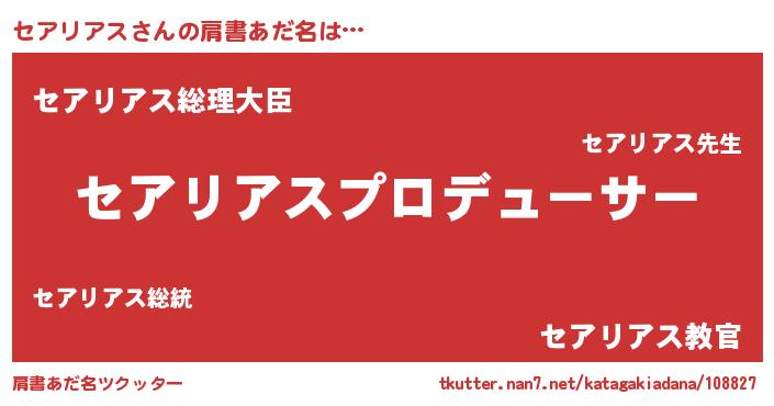 | 男性向けラノベタイトル風あだ名 | 『はたらくセアリアスさま!』 |