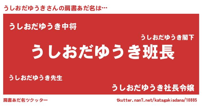 | 女子向けラノベタイトル風あだ名 | 『うしおだゆうき様がみてる』 |