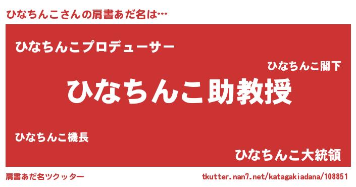 | ヒーロー風カッコイイあだ名 | 『天空の使者ひなちんこ』『仮面ヒナダー』 |