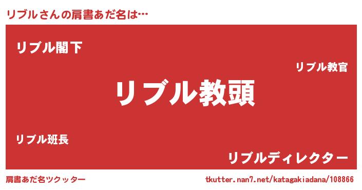 | 意味不明あだ名 | 『永久保存リブル』『自称リブル』 |