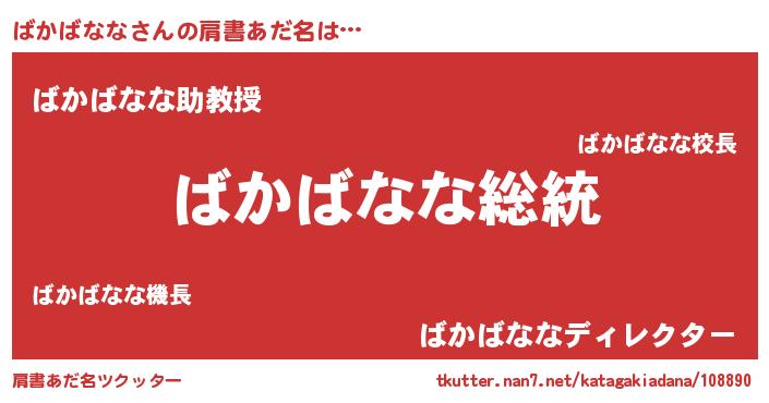 | 男性向けラノベタイトル風あだ名 | 『Re:ばかばななから始める異世界生活』 |