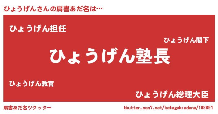| ポケモン風あだ名 | 『ヒヒョウゲン』『ゼニヒョ』 |