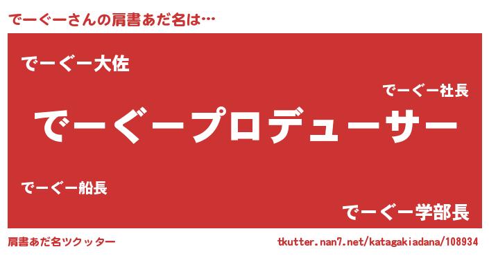 | ヒーロー風カッコイイあだ名 | 『慈愛の使者でーぐー』『天弓騎士デー』 |