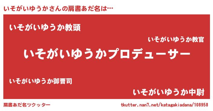 | ヘコむあだ名 | 『いそがいゆうか(遠い目)』『いそふぇ~』 |