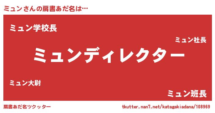 | ヒーロー風カッコイイあだ名 | 『慈愛の使者ミュン』『銀牙騎士ミュ』 |