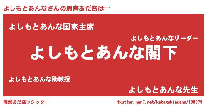 | 男性向けラノベタイトル風あだ名 | 『Re:よしもとあんなから始める異世界生活』 |