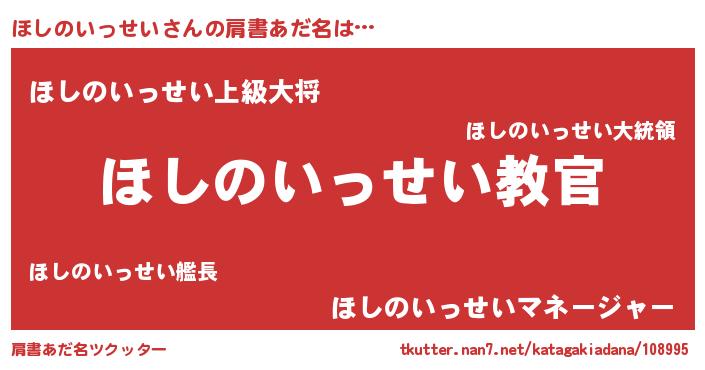 | 意味不明あだ名 | 『住所不定無職ほしのいっせい(68歳)』 |