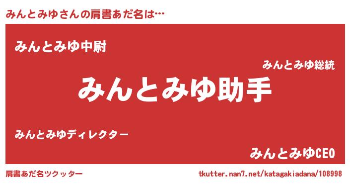 | ヒーロー風カッコイイあだ名 | 『正義の使者みんとみゆ』『暗黒騎士ミン』 |