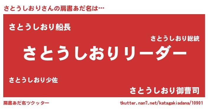| 男性向けラノベタイトル風あだ名 | 『さとうしおりの嫁は女の子じゃないと思った?』 |
