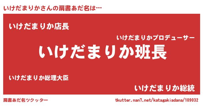 | ポケモン風あだ名 | 『ヒイケダマリカ』『イケチュウ』 |