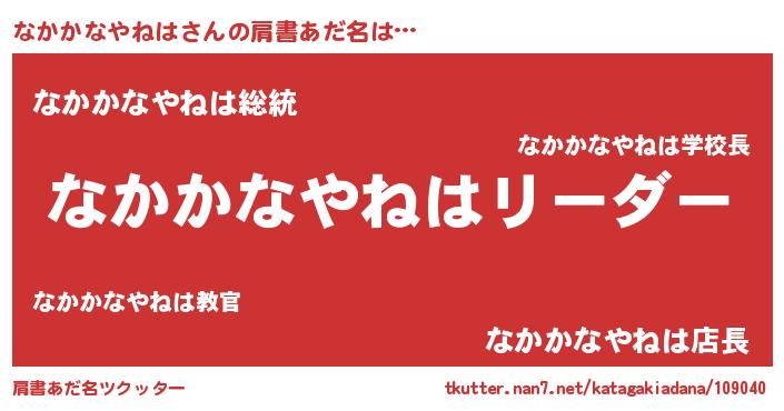 | 胡散臭い通販商品みたいなあだ名 | 『信頼と実績のペンダント…その名も「なかかなやねは」』 |
