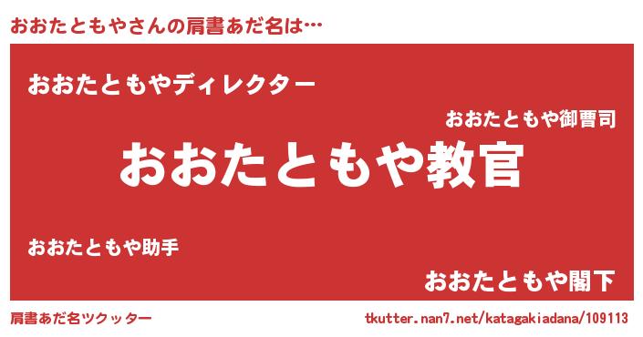 | 男性向けラノベタイトル風あだ名 | 『この素晴らしい世界におおたともやを!』 |