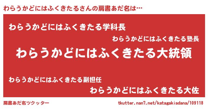 | 意味不明あだ名 | 『わらうかどにはふくきたるフォーエバー』 |