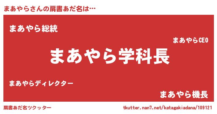| 欧米人風あだ名 | 『ダニエルまあやら』『マイケルまあやら』 |