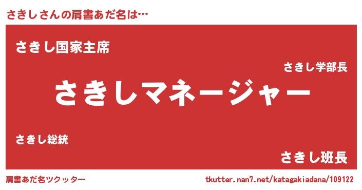 | 意味不明あだ名 | 『さきしフォーエバー』『自称さきし』 |