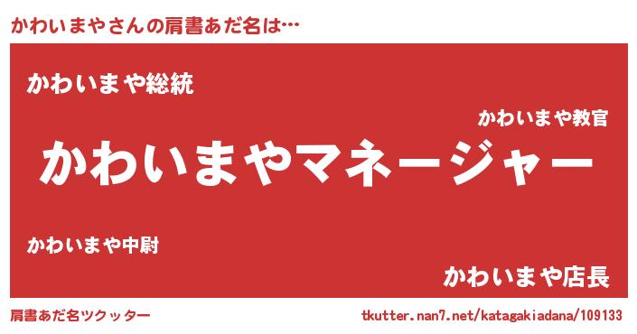 | 男性向けラノベタイトル風あだ名 | 『かわいまやに滅ぼされるだけの簡単なお仕事です』 |