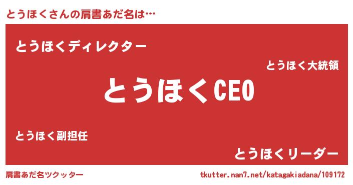| 意味不明あだ名 | 『ペロリンとうほく』『永久保存とうほく』 |