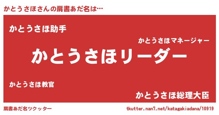 | ヒーロー風カッコイイあだ名 | 『幻影騎士カト』『愛の使者かとうさほ』 |