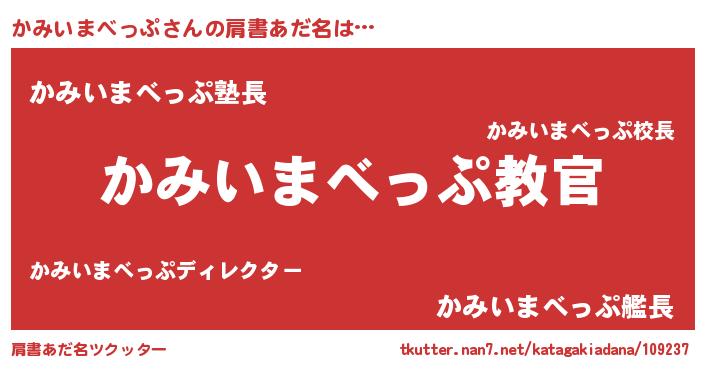 | 意味不明あだ名 | 『住所不定無職かみいまべっぷ(6歳)』 |