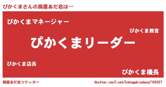 | 欧米人風あだ名 | 『ウサインぴかくま』『マイケルぴかくま』 |