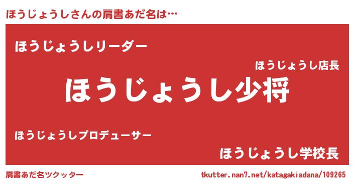 | ヒーロー風カッコイイあだ名 | 『魔戒騎士ホウ』『スーパーホウジョウシ』 |