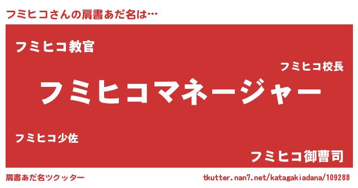 | ヘコむあだ名 | 『フミにー』『フミヒコ(苦笑)』 |