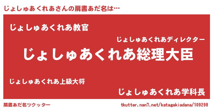 | 意味不明あだ名 | 『じょしゅあくれあフォーエバー』 |