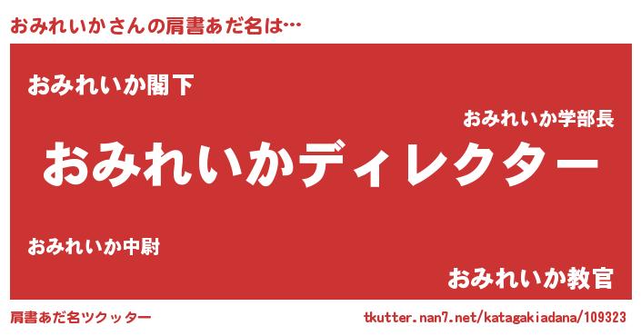 | 意味不明あだ名 | 『自称おみれいか』 |