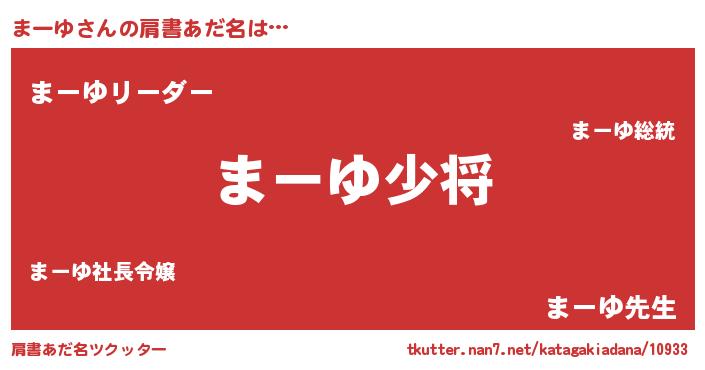 | ヘコむあだ名 | 『まーっぺ』『まーゆ(遠い目)』 |