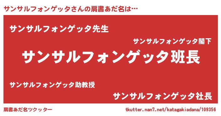 | 欧米人風あだ名 | 『ウサインサンサルフォンゲッタ』 |