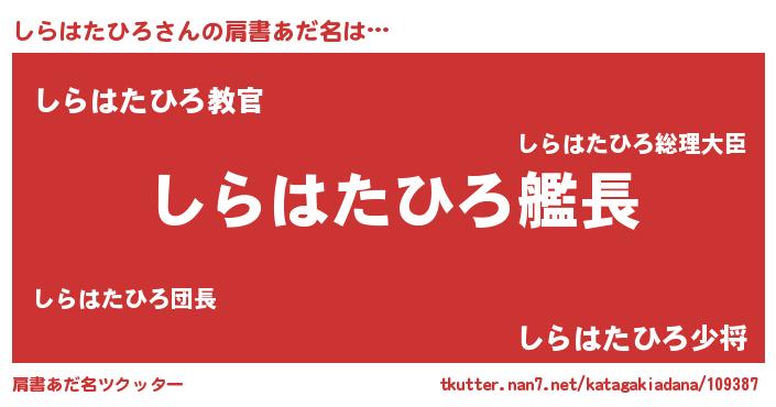 | 意味不明あだ名 | 『住所不定無職しらはたひろ(62歳)』 |