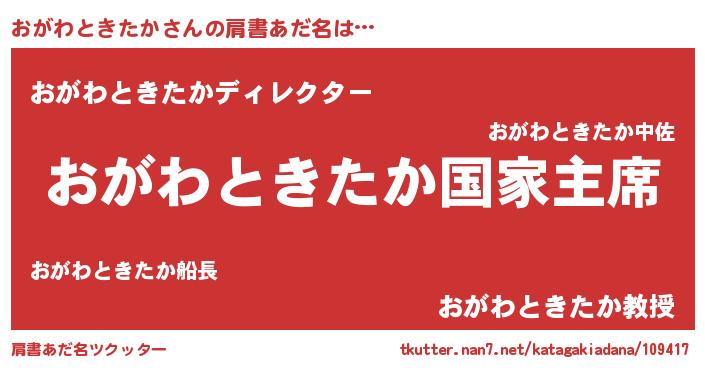 | 欧米人風あだ名 | 『おがわときたかクリステル』 |