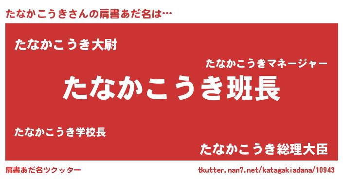 | ポケモン風あだ名 | 『ヒタナカコウキ』『タナキング』 |