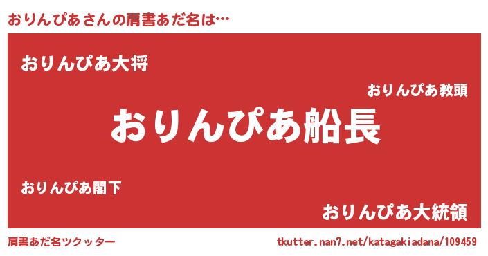 | 男性向けラノベタイトル風あだ名 | 『うちのおりんぴあが世界を掌握している!』 |