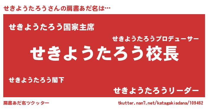 | ヒーロー風カッコイイあだ名 | 『ネオセキヨウタロウ』『暗黒騎士セキ』 |