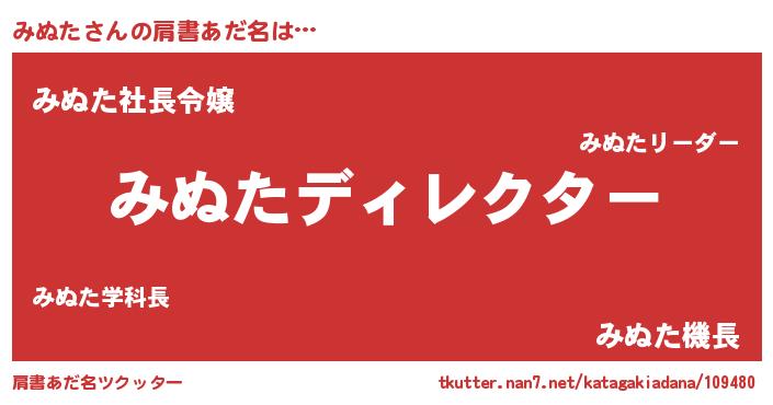 | 男性向けラノベタイトル風あだ名 | 『はたらくみぬたさま!』『緋弾のミヌタ』 |