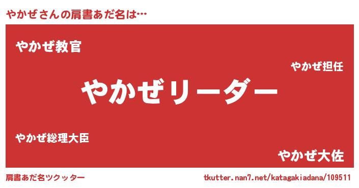 | 女子向けラノベタイトル風あだ名 | 『やかぜは平凡を望む』 |