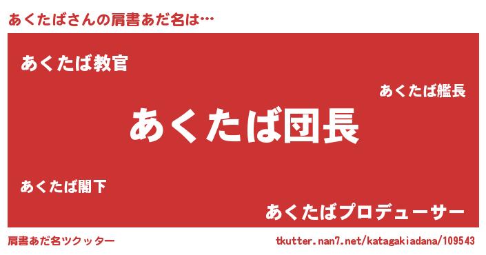 | ヘコむあだ名 | 『あくお』『酢こんぶ』『あくふぇ~』 |