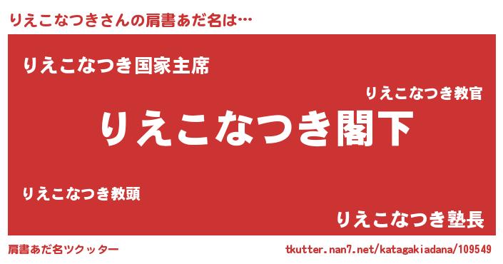| 意味不明あだ名 | 『自称りえこなつき』 |