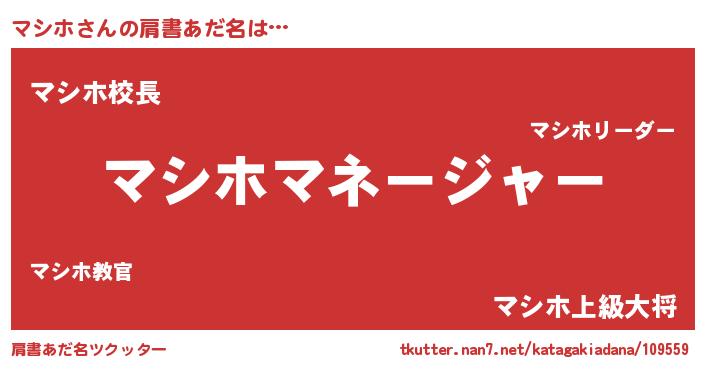 | ヒーロー風カッコイイあだ名 | 『ネオマシホ』『魔戒騎士マシ』 |